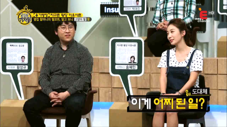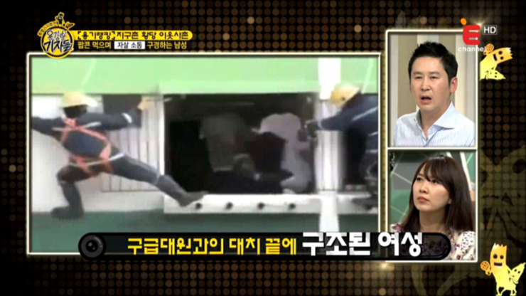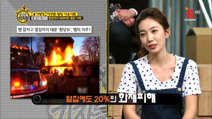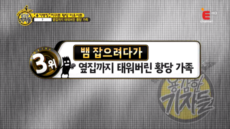 용감한 기자들 112회, 용기랭킹 - 황당한 이웃, 팝콘 먹으며 자살 소동 구경하는 남성, 옆집 할머니의 털 코트 알고 보니 고양이 털옷, 뱀 잡으려다가 옆집까지 태워버린 황당 가족, 용감한 기자들 (출처 : E채널 용감한 기자들 2015.5.20 방송)