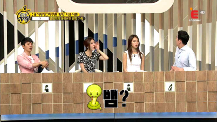 레이디제인이 '뱀'이라고 외치자마자 '그럼 나도 뱀!'이라고 외치는 신동엽씨....ㅋㅋㅋㅋㅋㅋㅋ