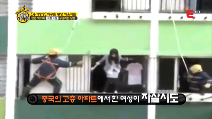 중국의 한 고층 아파트에서 한 여성이 자살시도를 했는데요, 다행히 그 여성은 구조가 되었다고 합니다.